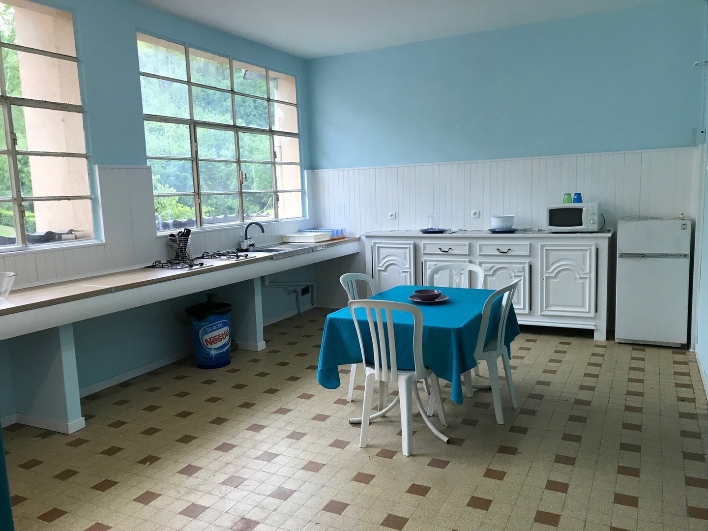 Notre camping de plein air dispose également d’une cuisine collective équipée tout avec réfrigérateur, four micro-onde, plaque de cuisson et vaisselle. Elle est mise à disposition de tous les clients de l’hôtel et du camping.