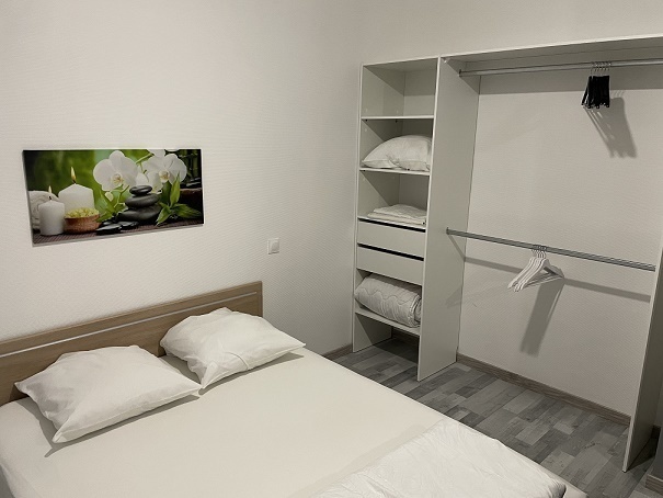 Il comprend une chambre avec un lit parental et un coin salon convertible permettant l’accueil de 2 à 4 personnes.